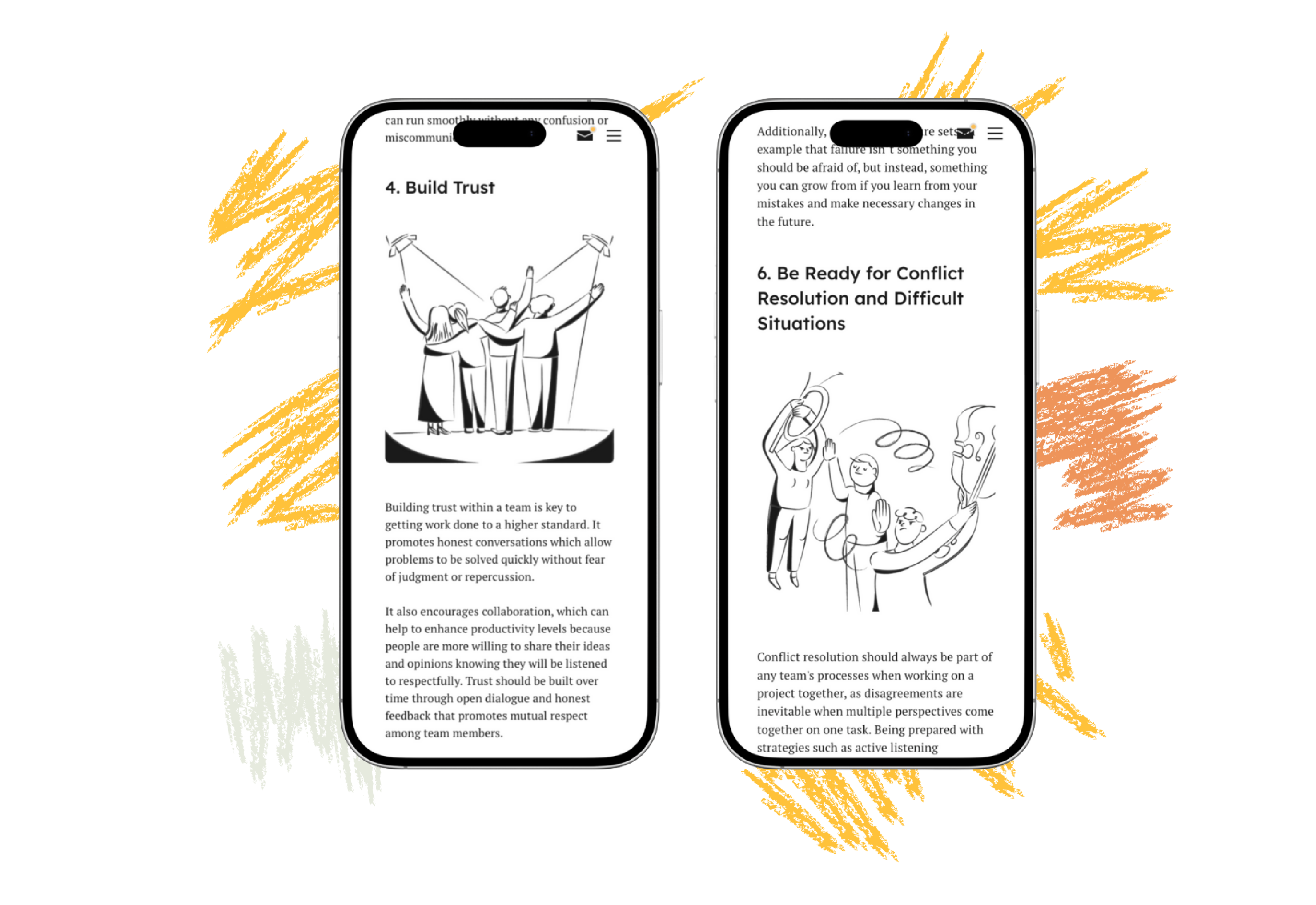 My challenge was to transform a complex, process-driven topic into something visual and story-driven. To do this, I developed a series of orchestra-inspired illustrations for the section “How to Build a Cross-Functional Team”. I used the metaphor of an orchestra: different instruments (like different disciplines) working together in harmony to achieve a shared outcome.